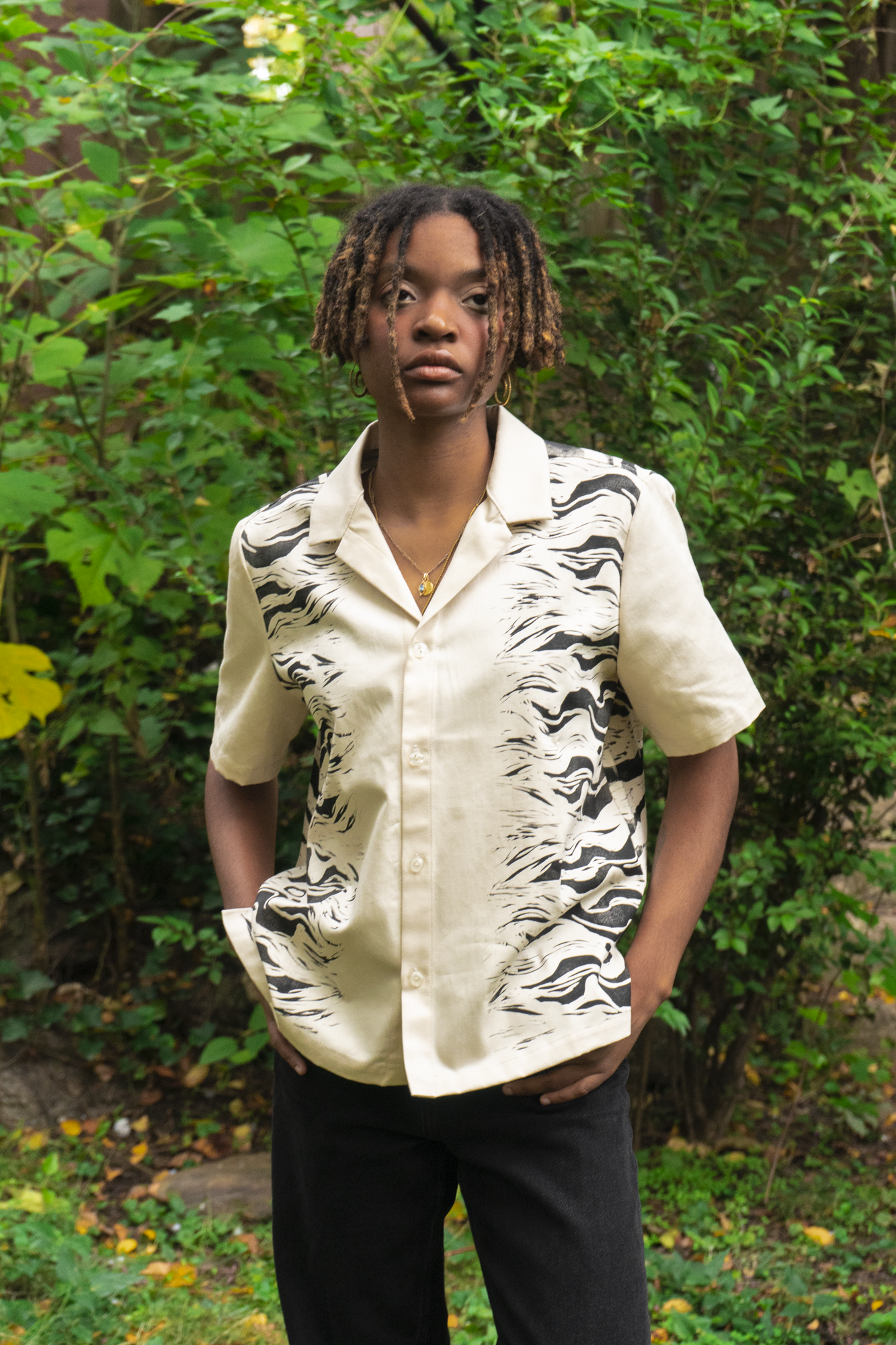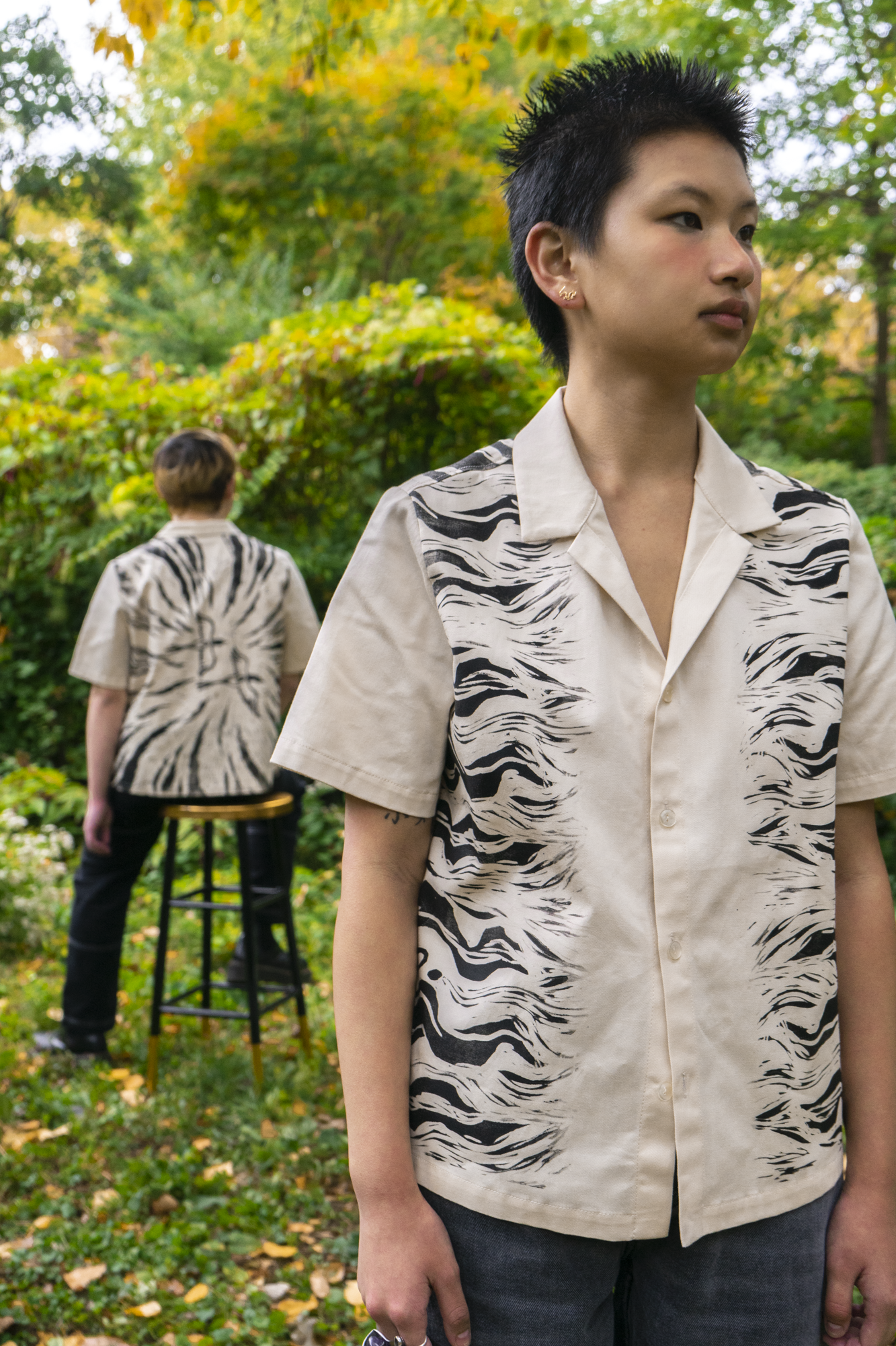 We’ve embraced our mythic and contemporary guardians in this shirt through the stripes of the tiger and the soaring wings of the magpie: both the smoke and the light, and the radiance that happens when they meet.