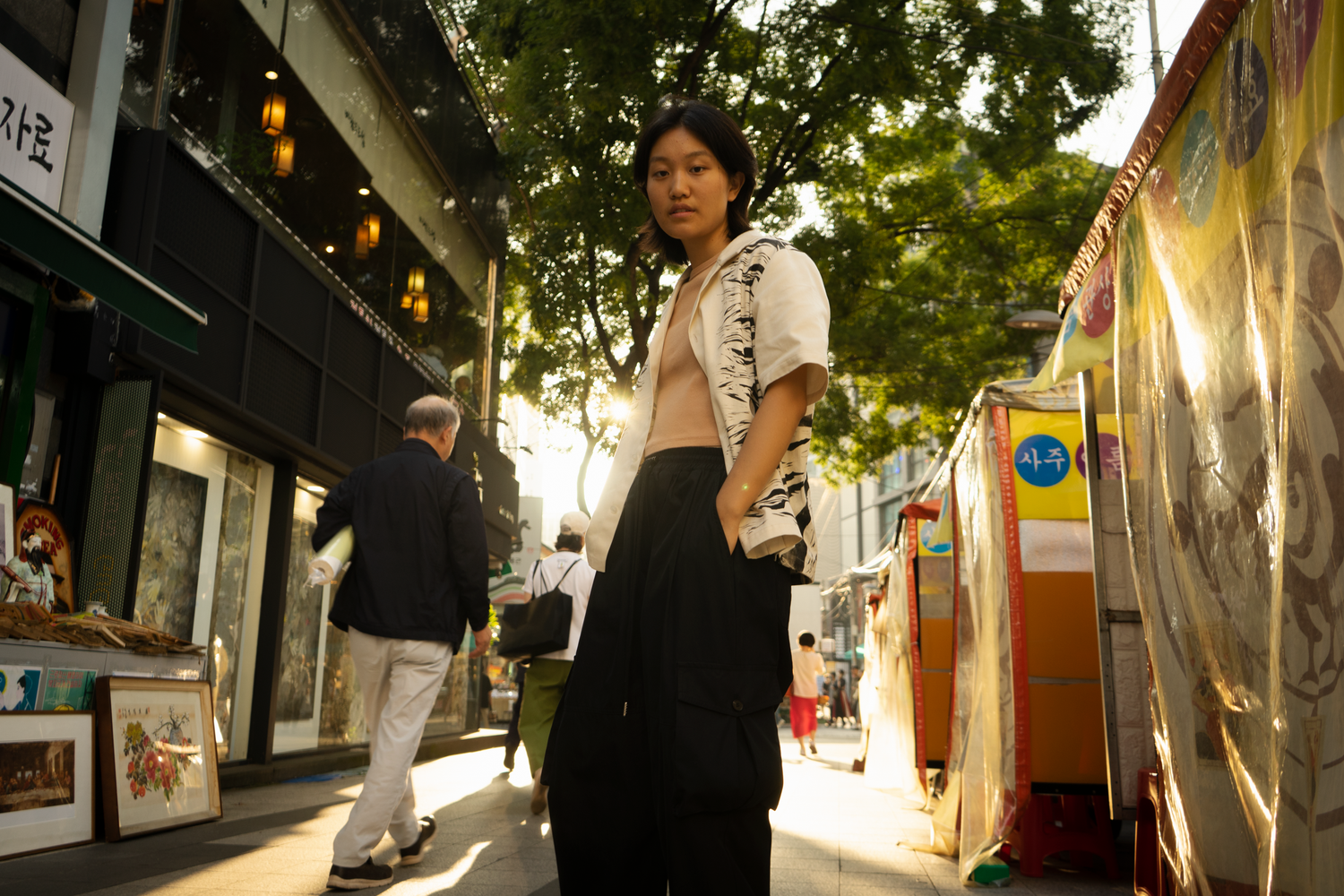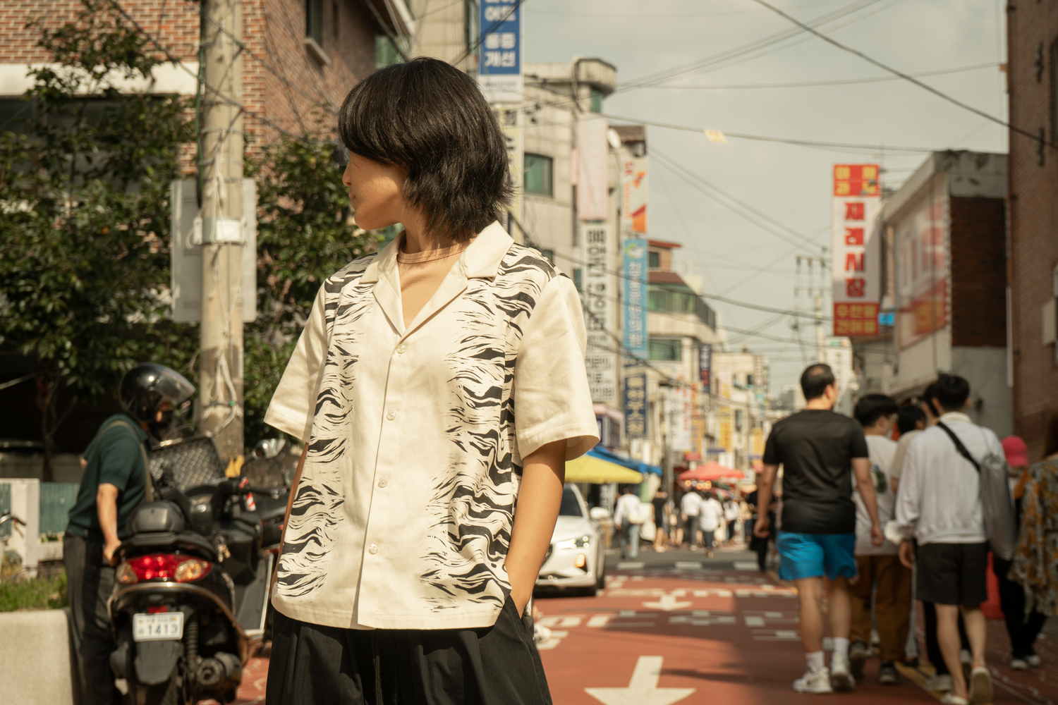We took the Smoke & Light Shirt with us to Seoul, and spent the day wandering through neighborhoods and markets, both familiar and new. The air was humid and the subways were packed. By the end of the day, an overcast sky broke through with sun. We stole bites of 1,000₩ koroke and sips of iced coffee along the way.