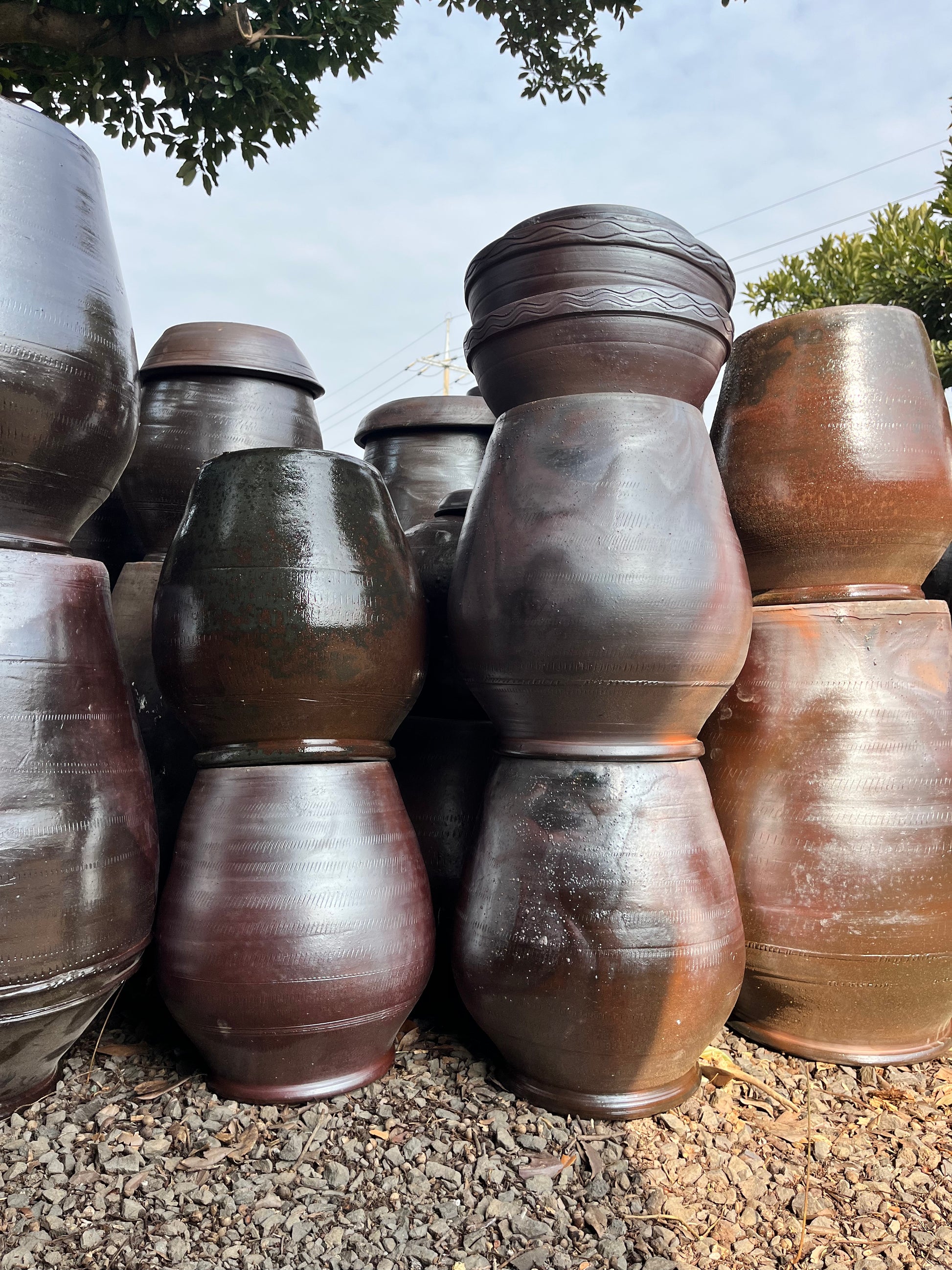 Inspired by our time at Jeju Onggi Maeul, one of the only remaining traditionally wood-fired kilns in Korea still producing handcrafted onggi today. Made from indigenous volcanic soil, Jeju onggi are unglazed, leaving all color variation up to the dance of the flames in the kiln. One hangari in particular caught our eye – in three almost perfect layers, it held a tantalizing gradation of earthen colors.