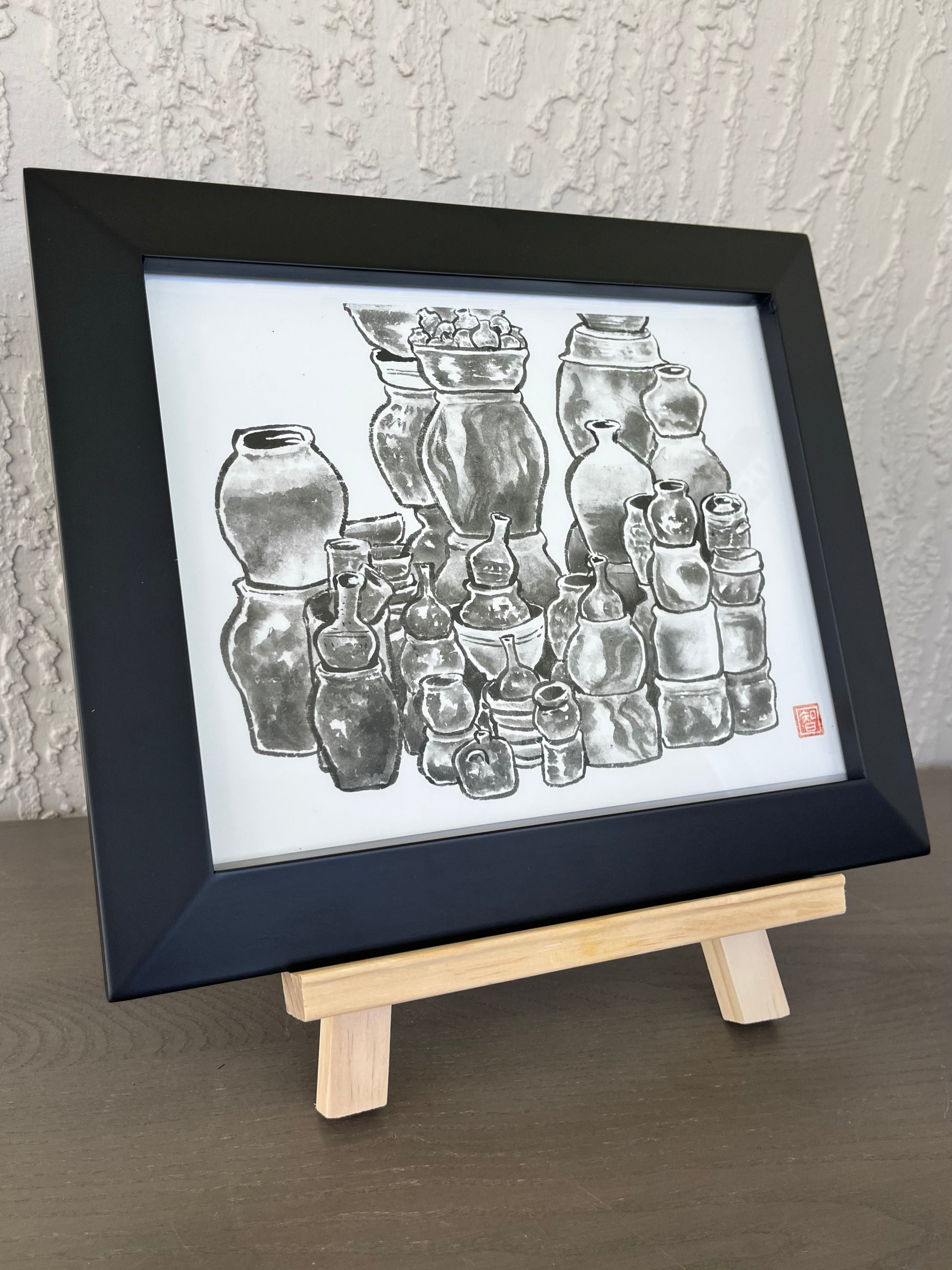 Originally painted with ink on hanji. Measures 7.25x10.25" on 100 lb paper (nice and thick!). Printed in black and white with a smooth matte finish.