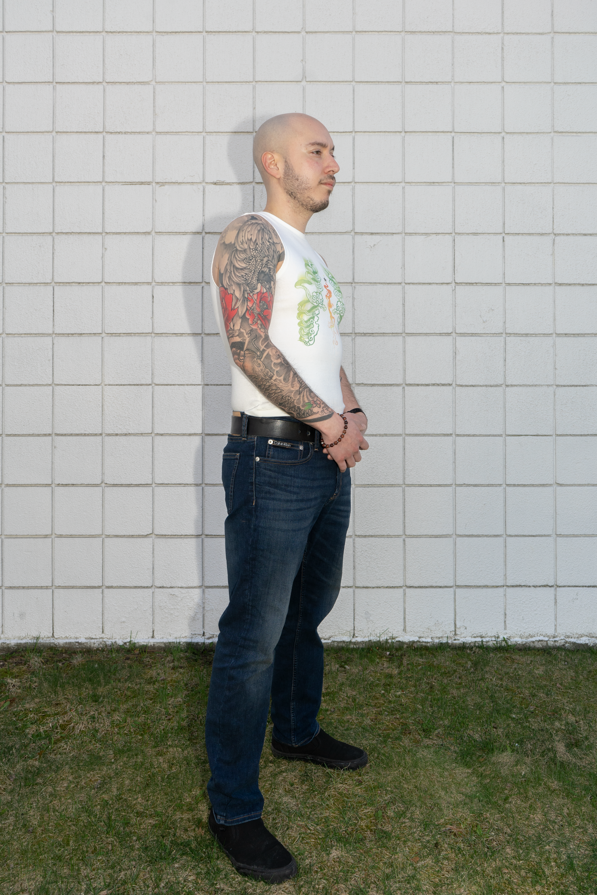 Jhenna is 5'7” and wears a size XS. Ollie is 5'7" and wears a size M. Sergio is 5'9" and wears a size L.
