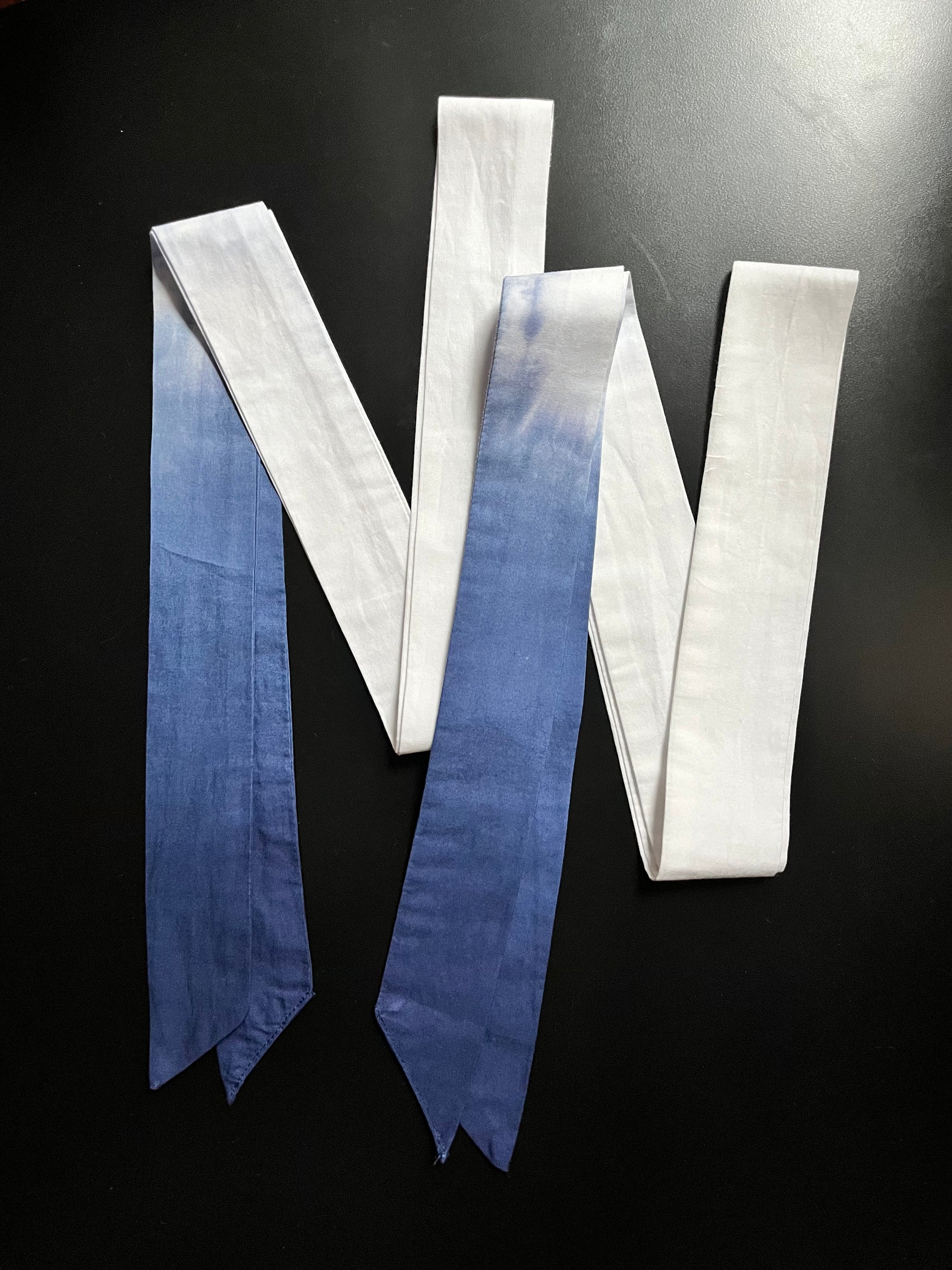 Each dyed Teardrop Ribbon is one-of-a-kind! We’ve sewn and dip dyed each of these ribbons by hand. Thus each one has a unique appearance and there may be slight variations.